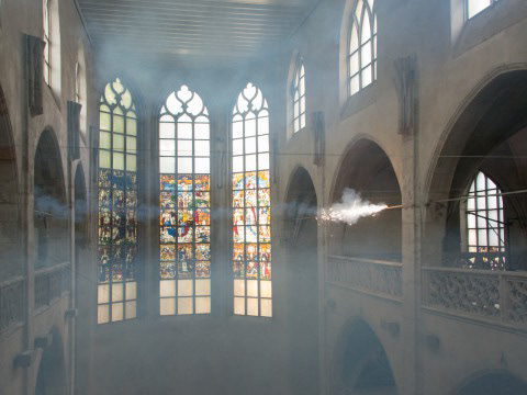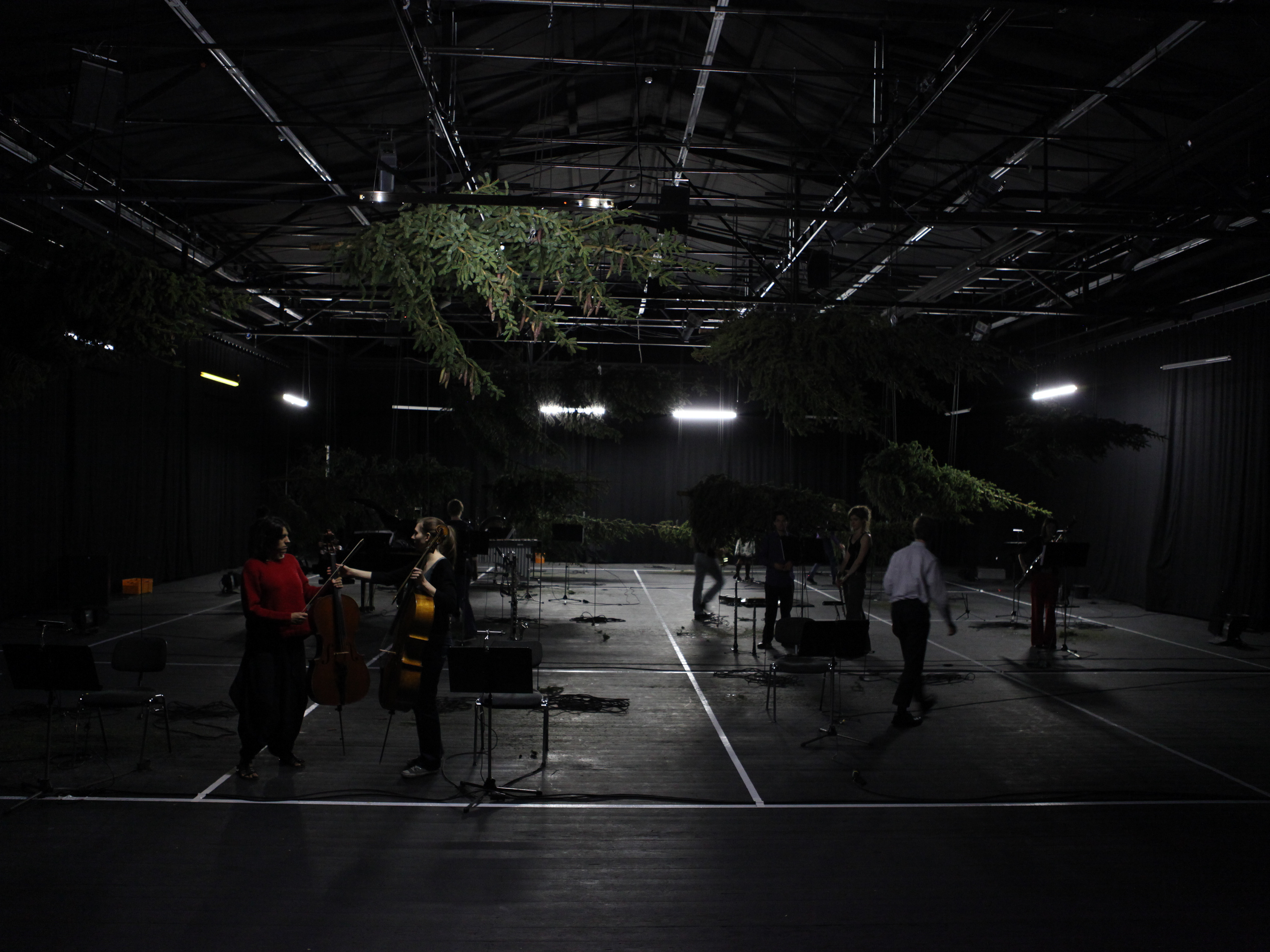 Trio for Cello – Lucy Railton, analogue Synthesizers – Florian Zwißler and Pyrotechnics. Installational concert performance. Duration: 2 hours